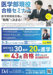 5月3日11:00〜12:30で「医学部現役合格セミナー」を開催します。