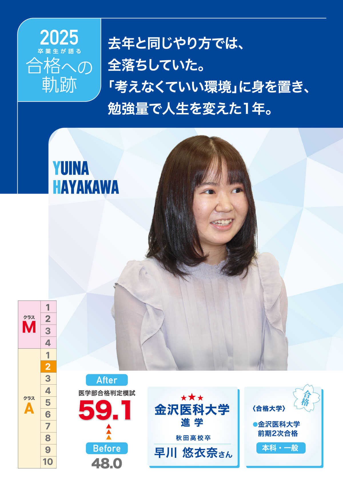 苦手と言う暇は、もうなかった。示された道を信じて進み続けた先に、金沢医科大学合格があった。